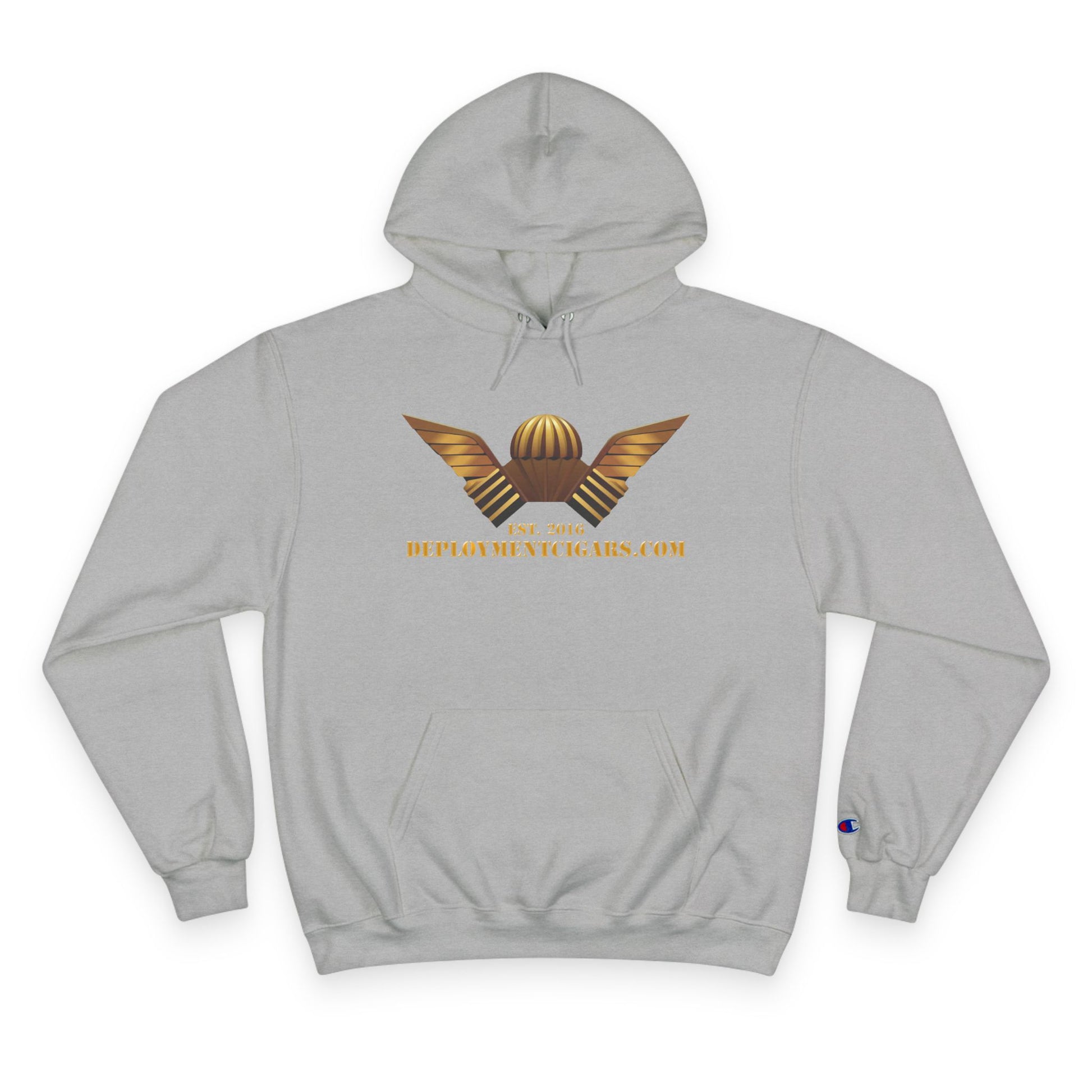 Champion Hoodie — Gold Wing Emblem Military-Inspired Pullover